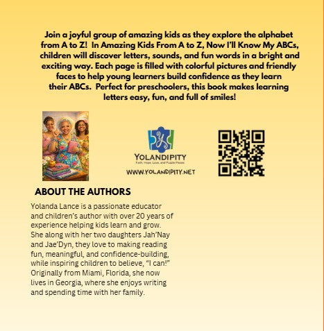 Amazing Kids From A to Z, Now I’ll Know My ABCs is a vibrant, child-friendly alphabet book specifically designed especially for preschoolers and early learners. Each page introduces a letter with clear sounds, simple words, and colorful illustrations featuring joyful children.